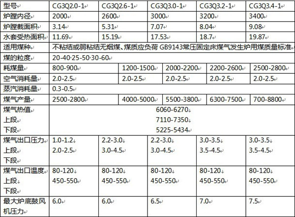 兩段式煤氣發生爐技術參數