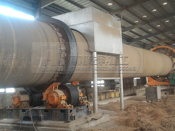 圓筒形的主窯體與水平呈3°左右的傾角放置在托滾上。物料在高的一端進入窯內,在窯體做回轉運動的作用下, 物料從高處(窯尾)滾落至低處(窯頭),同時,在窯頭處,高壓風機將煤粉(或天然氣等其他燃料)噴入窯內,并使其充分燃燒,產生的熱量使物料發生物理和化 學變化,產生膨脹現象,冷卻后既為陶粒。